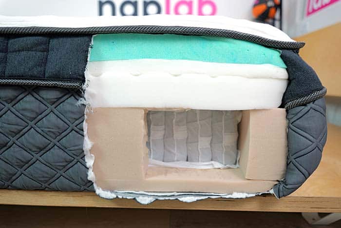 This design is intended to meet federal safety standards without the risk of irritating glass fibers escaping if the mattress cover is removed or damaged.