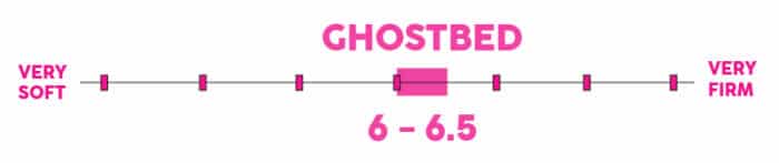 The GhostBed mattress has a firmness rating of 6 to 6.5 out of 10, depending on the model. Therefore, it’s suitable for most types of sleepers, including heavier users.