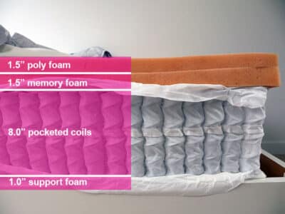 Materials: poly foam, memory foam, pocketed coils, support foam