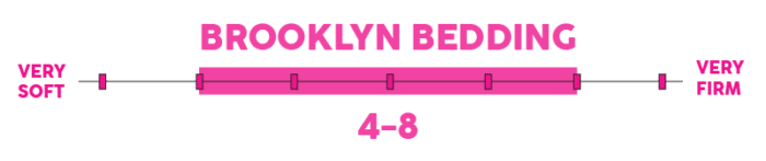 The firmness of Brooklyn Bedding mattresses spans a wide range from 4 out of 10 up to 8 out 10, where 10 is the most firm. This range helps provide a suitable mattress for a wide range of sleepers, regardless of body weight or sleeping position.