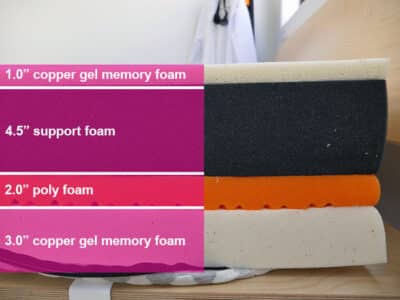 Materials: copper gel memory foam, poly foam, pocketed coils