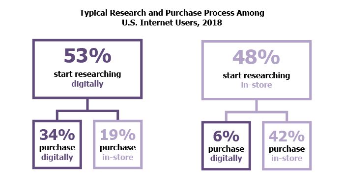 From those respondent pools, 34% of people who began research online also make the final purchase digitally, while 19% opt for in-store purchasing.