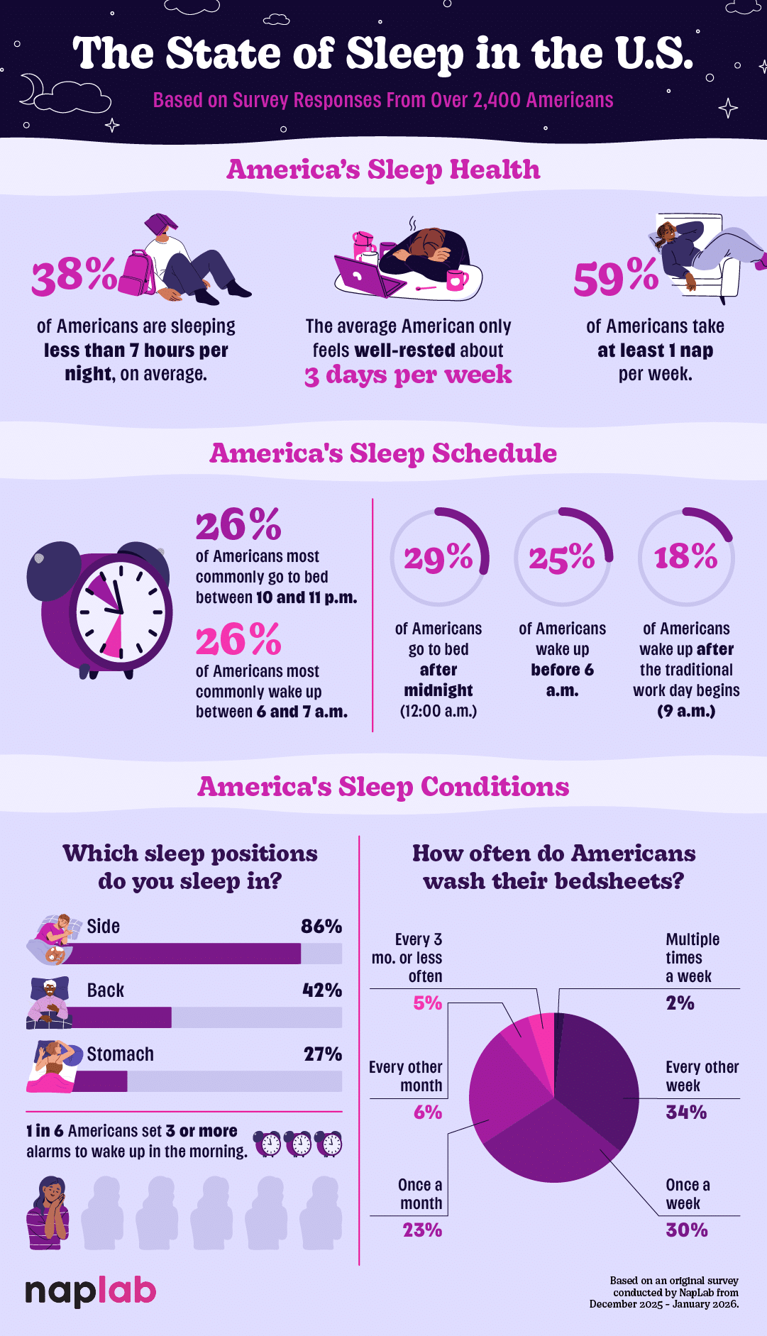 Sleep plays a central role in physical health, mental well-being, and daily performance. To better understand how Americans are actually sleeping, NapLab analyzed large-scale survey data to identify national and state-level sleep trends shaping rest in 2026.