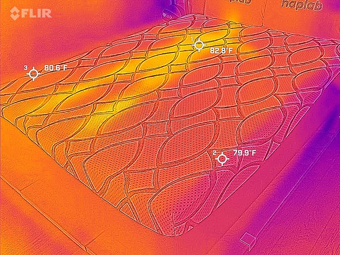 In our tests, the mattress reached 89.9°F after lying on it for 15 minutes, which is 0.2 degrees warmer than after.