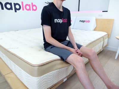 The average edge support score across all mattresses tested to date is 8.6, with 4.02″ of sinkage when seated at the edge of the mattress.