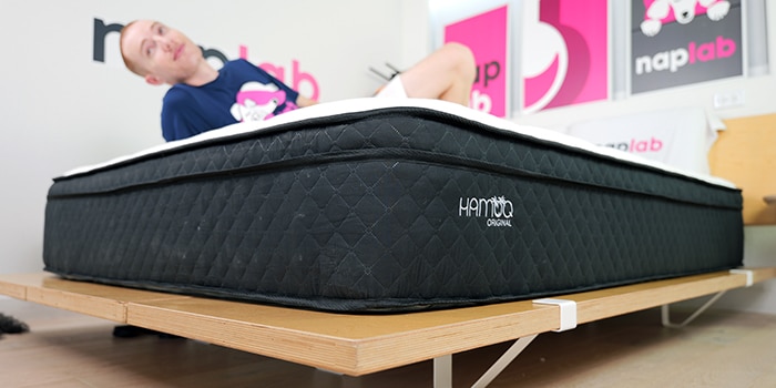 Support on the Hamuq is excellent. During our tests, I felt well-supported in all sleeping positions. The mattress is equipped with a 9.0″ support layer. This is 1.11″ thicker than the average support layer thickness of 7.89″, based on all of our tests to date.
