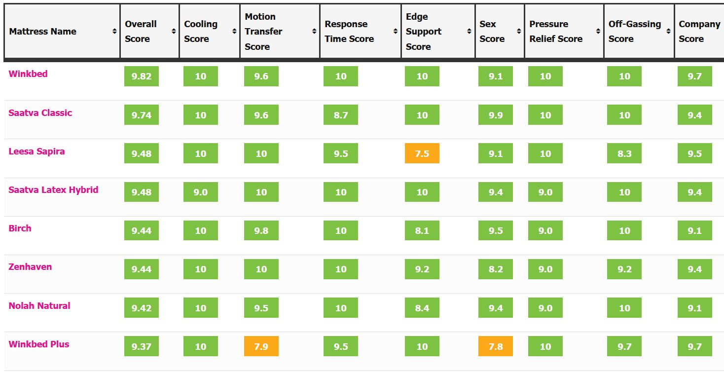 Compare all 100+ mattress brands we’ve tested. Prices, scores, warranty, trial, returns, and more, all side-by-side.